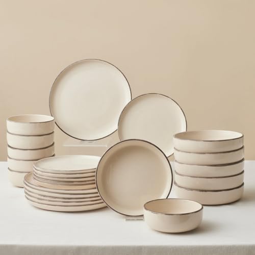 Karaca Monica 24-Piece Stoneware Dinner Set for 6 People, Dinner Plate, Dessert/Side Plate, Pasta Bowl, Cereal/Soup Bowl, Dishwasher Safe, Beige