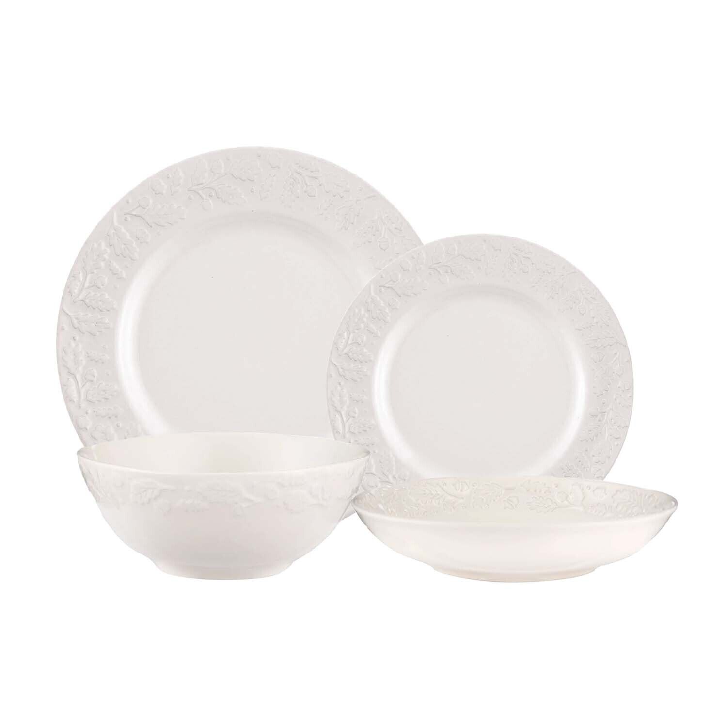 Ceramic Dinner Set Embossed Acorn Dinner Plate Side Plate Cereal Bowl Pasta Bowl