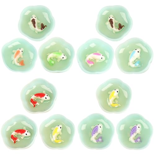 YARNOW 12Pcs Miniature Resin Fish Bowl Decor Set with Goldfish Models, Mixed Colors Dollhouse Accessories, Tiny Fish Tank Ornaments for Doll House Decoration