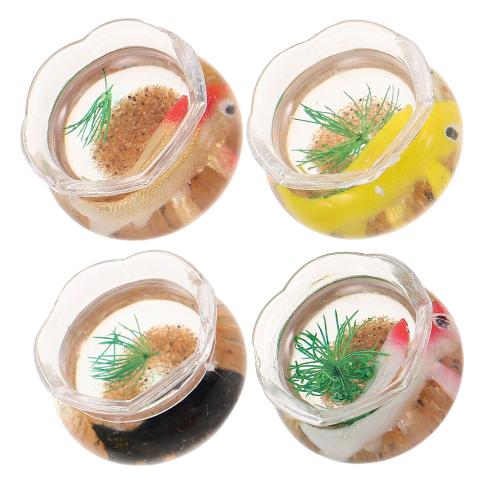 4Pcs Dollhouse Fish Tank: Pvc Mini Round Bowl For Koi Goldfish Decor