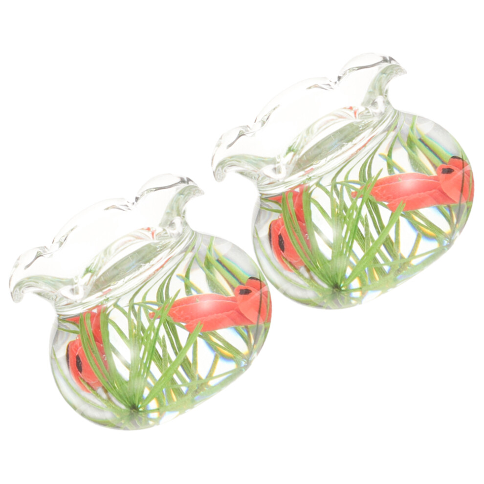 2Pcs Miniature Fish Bowl Doll House Glass Goldfish Tank