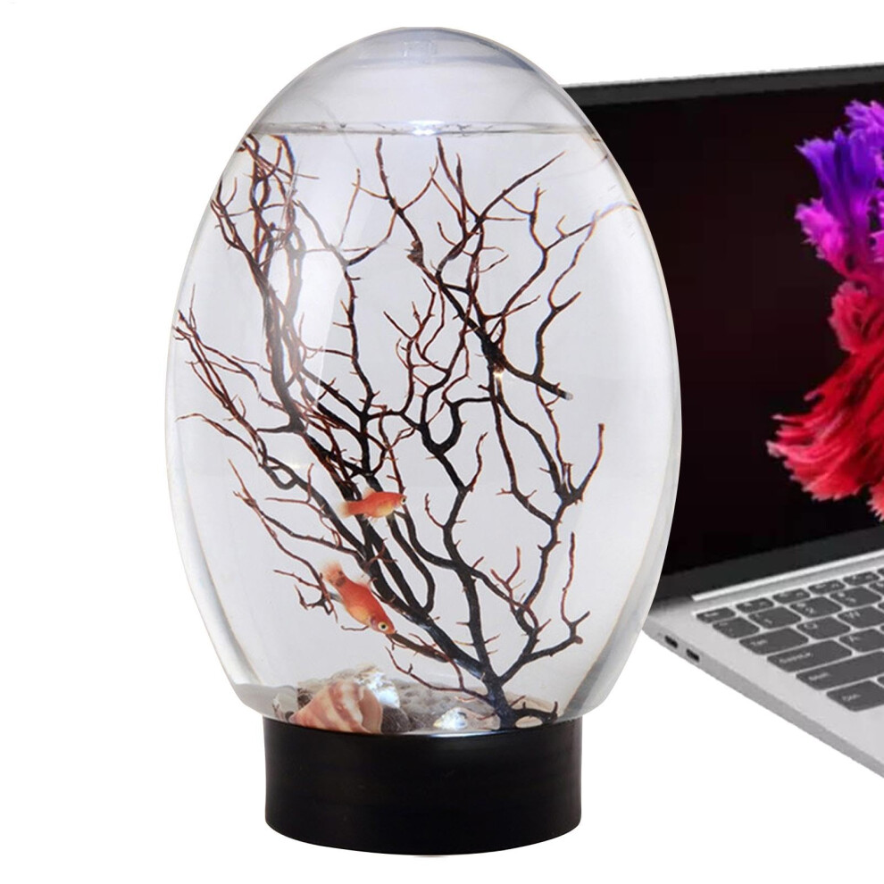 Small Glass Fish Tank EggShaped Transparent Bowl for Goldfish, Mini Desktop Aquarium Home Office