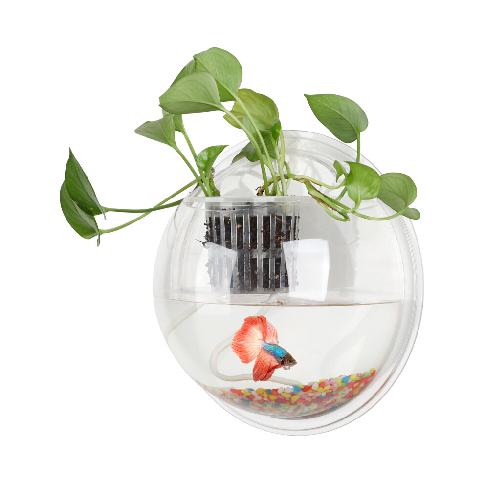 Creative Wall Mounted Fish Bowl Acrylic Hanging Aquarium Decorative Planter With Planting Basket Ideal For Goldfish And Hydroponic Plants High Transpa