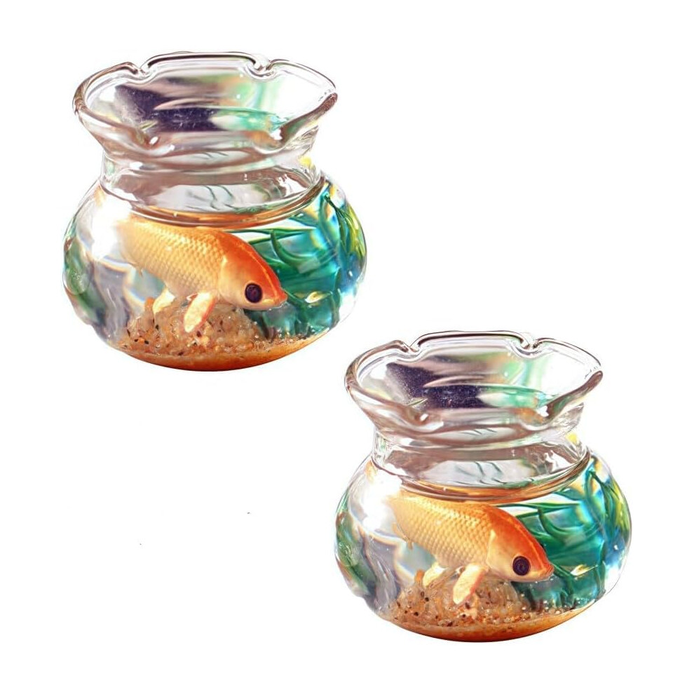 Transparent Glass Fish Bowl 2-Pack for Hydroponic Plants and Goldfish Decorative Office Home Desk Aquarium Terrarium