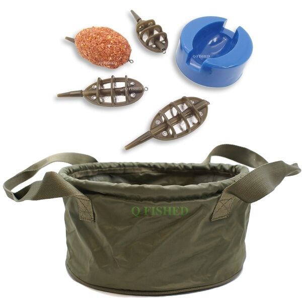 Fishing Groundbait Bowl Bucket Mix & Stiff Rig Wallet 20 Pin Zip Case Carp Tackle Preparation