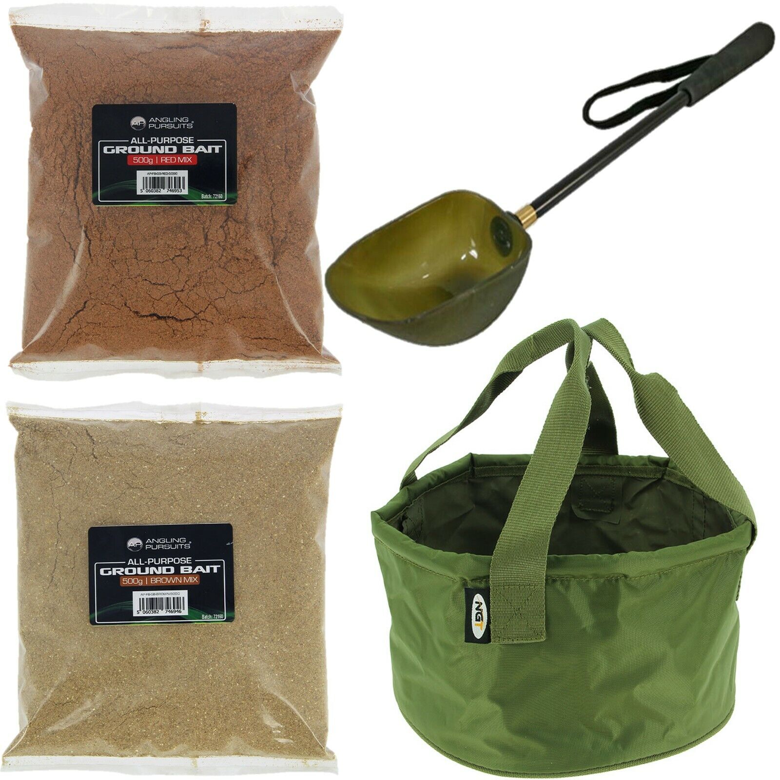 NGT Groundbait Method Mix Mixing Bowl With Method Feeder Set Carp Fishing Tackle