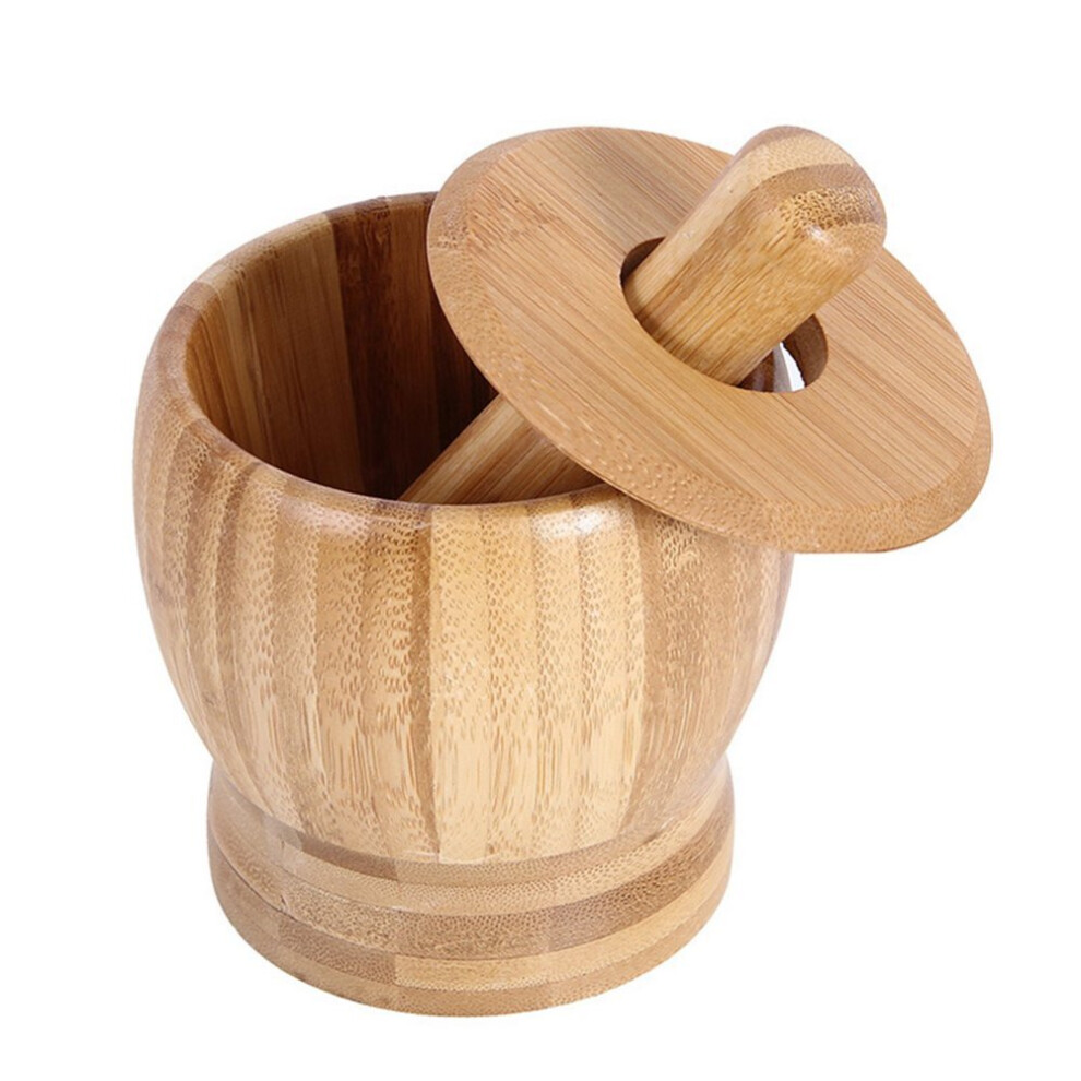 Wooden Mortar and Pestle Set with Lid Garlic Pepper Grinder Pill Crusher Spice Mortar Bowl Garlic Pepper Press Grinder Mix