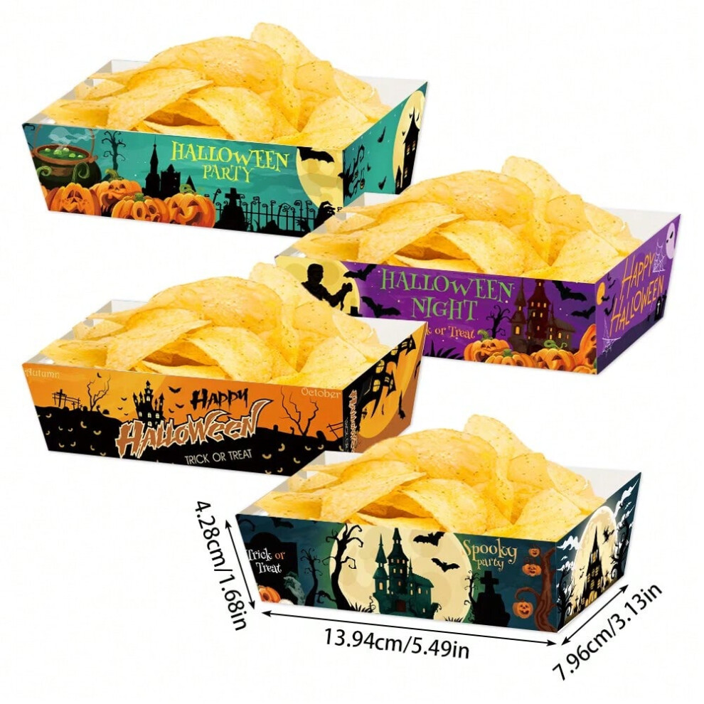 (mix style, 4pcs) 4/8/12pcs Halloween potato chips Paper Trays Happy Halloween Snack Food Bowl Boxes Movie Night Halloween Trick or Treat decor