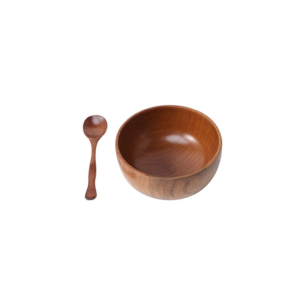 2pcs Wooden Salad Bowl Serving Bowl with Spoon Rice Soup Noodle Mix Ice Cream Cereal Snack Bowls