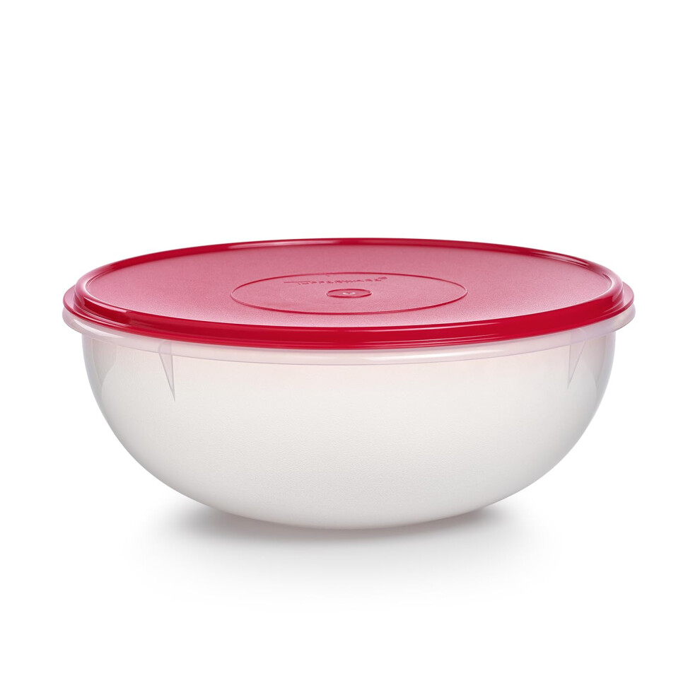 Tupperware Fix-N-Mix 1.7 Gallon Mixing Bowl Clear with Lipstick Colored Airtight Lid Dishwasher Safe and BPA Free (6.5 L)