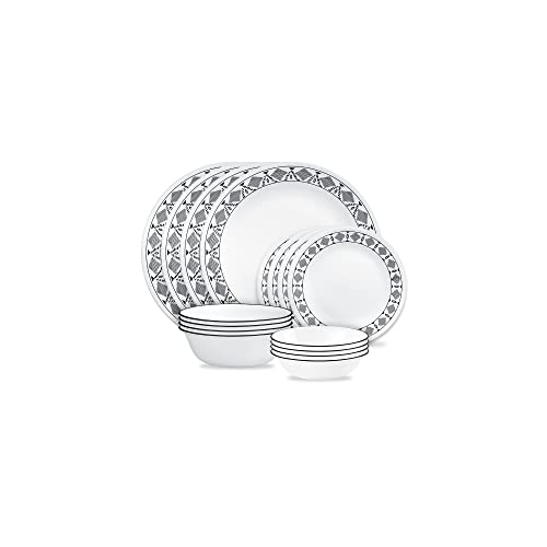 Corelle Cusco 16pc, Service for 4, Dinnerware Set, 8 Plates 8 Bowls, Chip & Break Resistant, Dinner Plates and Dinner Bowls, Corelleware Plates, White