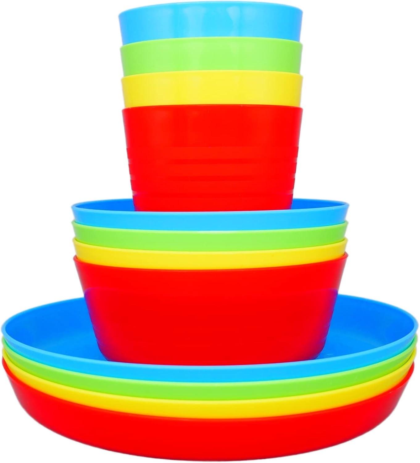 Toddler Dining Set, 4 Plastic Cups, Bowls and Plates, Reusable, BPA Free, Kids