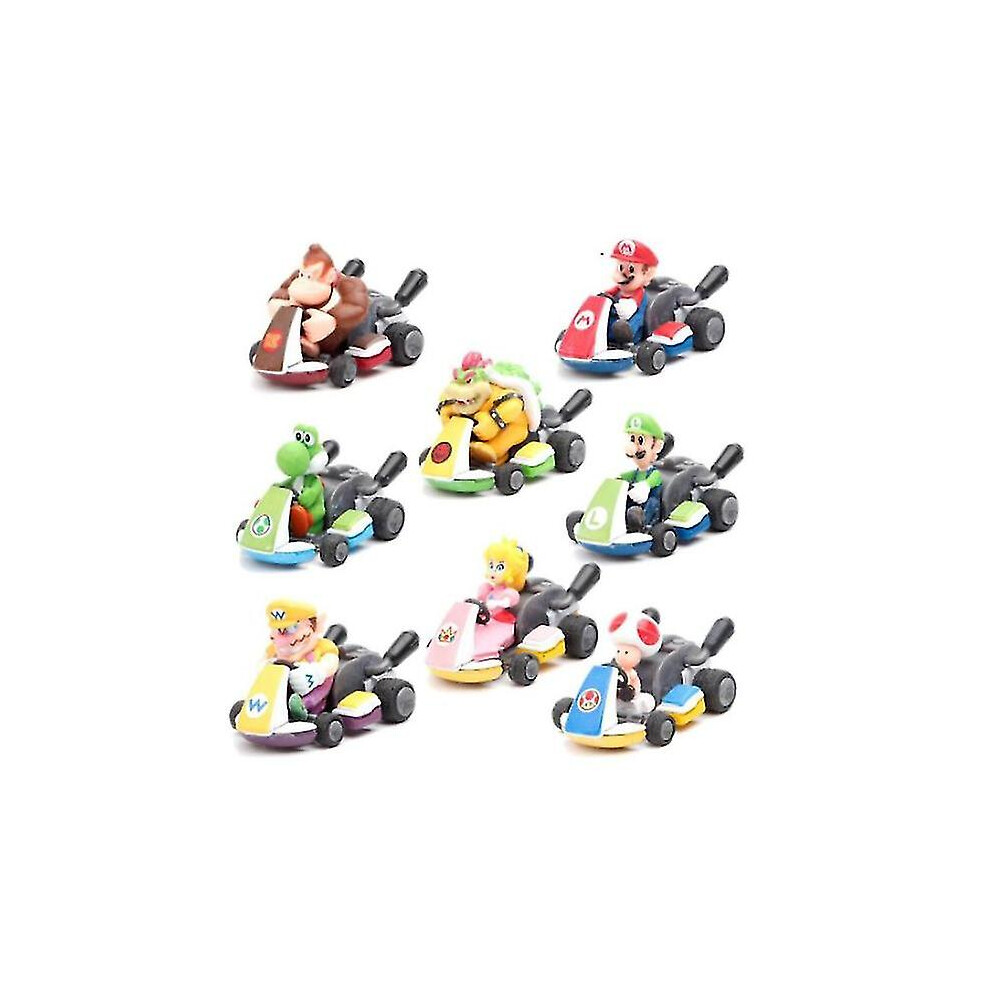 8pcs Super Mario Kart Pull Back Car Luigi Toad Bowser Princess Figure Kids Toy