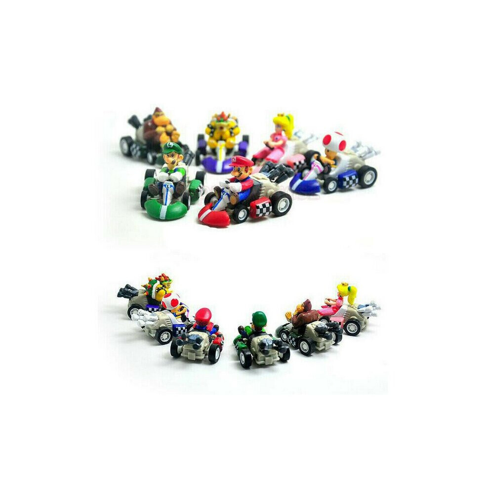 8PCS Super Mario Kart Pull Back Car Luigi Toad Bowser Princess Figure Kids Toy