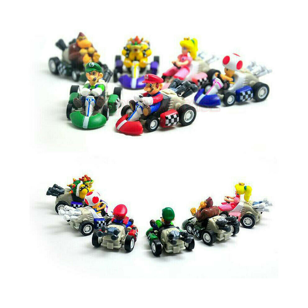 8pcs Super Mario Kart Pull Back Car Princess Luigi Bowser Figure Kids Toys Gifts