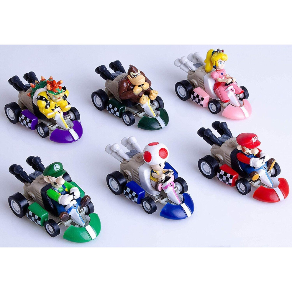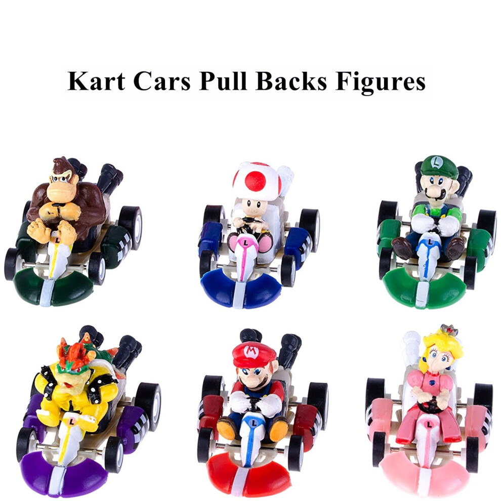 6PCS Mario Kart Cars Pull Backs Figures, Mario, Luigi, Princess Peach, Bowser, Toad, Donkey Kong Perfect Mario Cake Topper Decorations