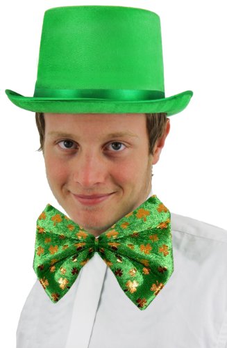 St Patricks Day Irish Fancy Dress Costume Set Hat + Giant Shamrock Bowtie Ireland Shamrock Leprechaun (Satintop Hat)