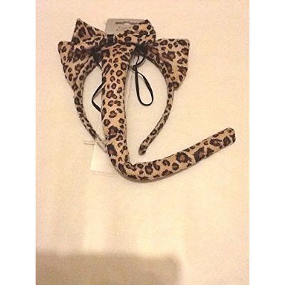 Leopard Print Set Ears, Tail Bow & Tie Bowtie Fancy Dress