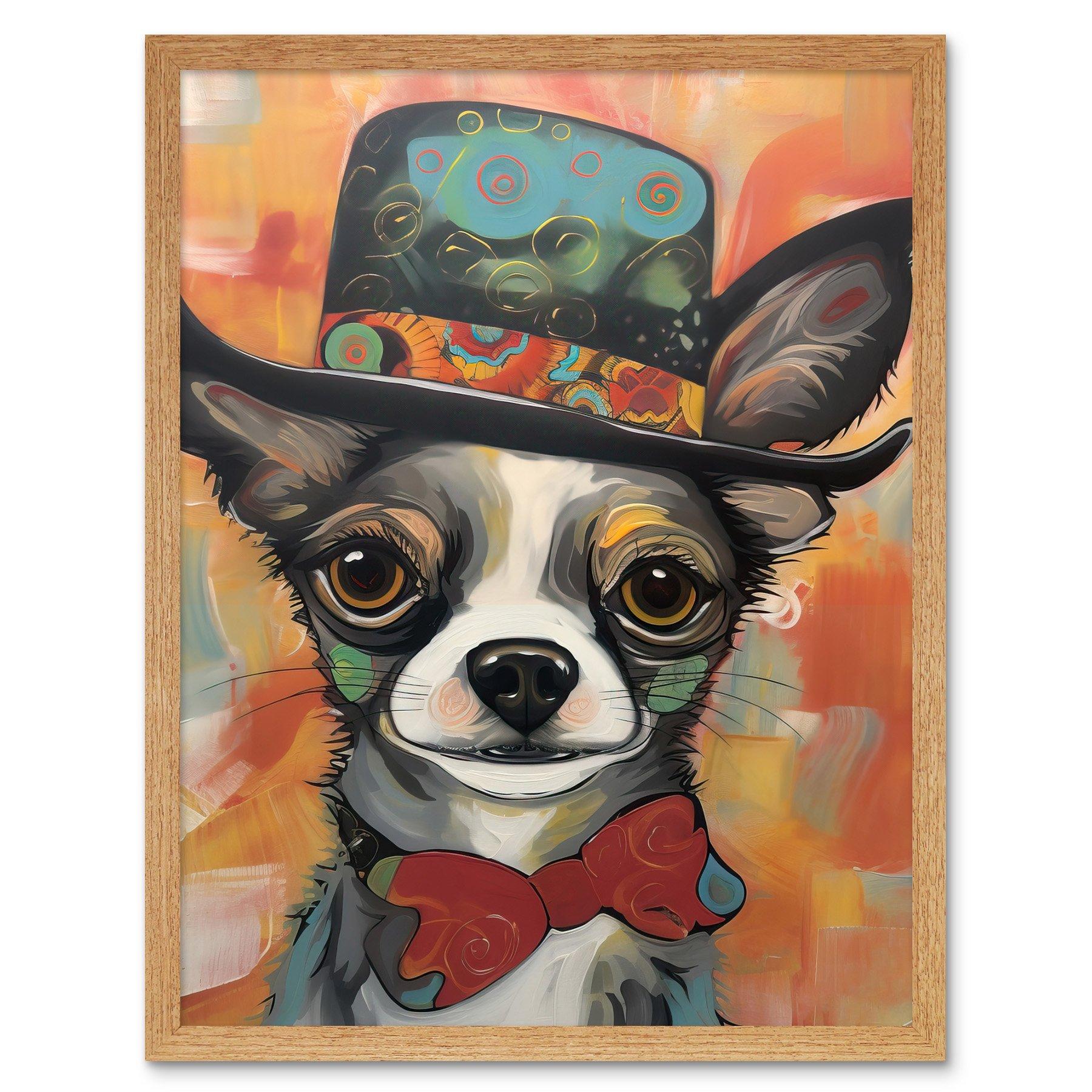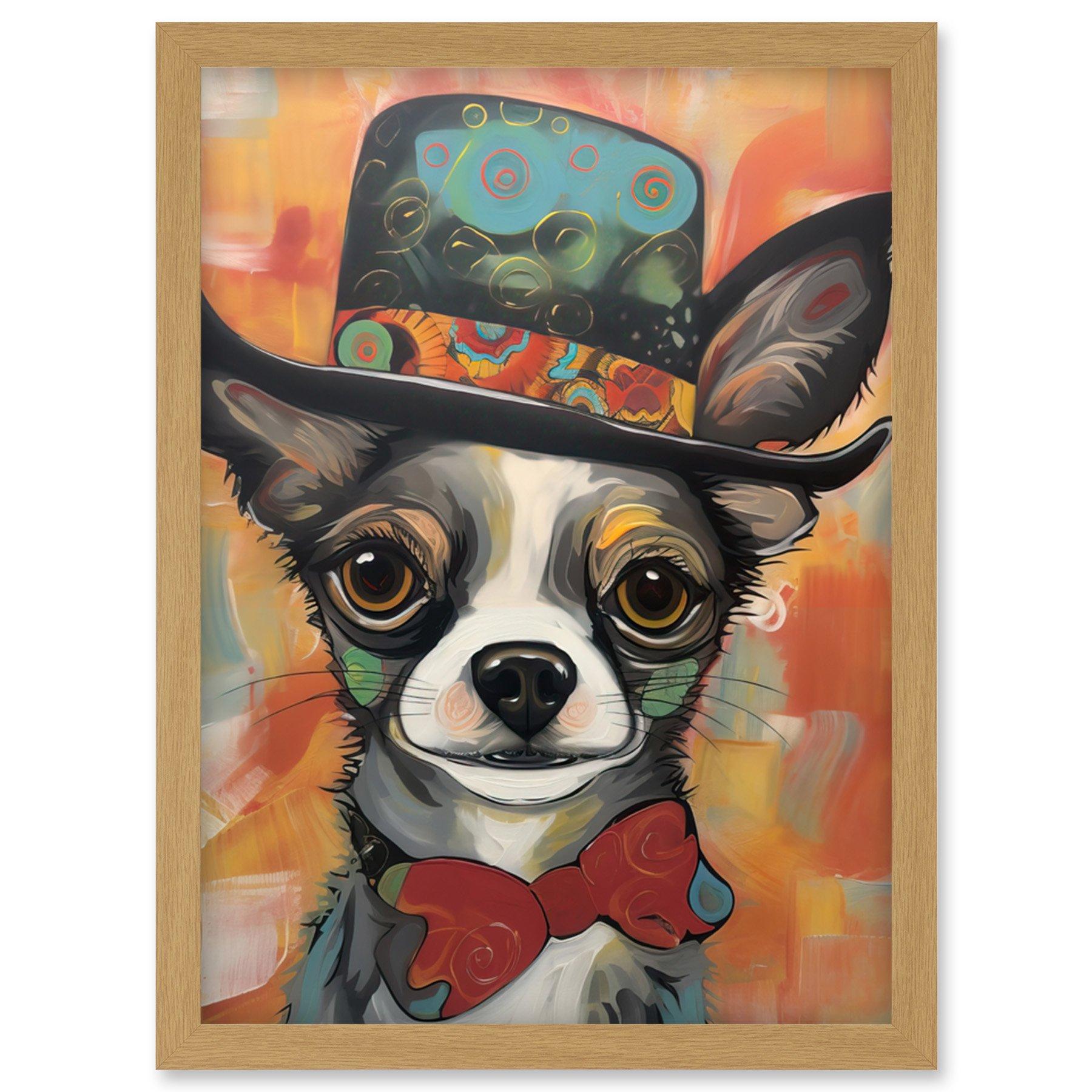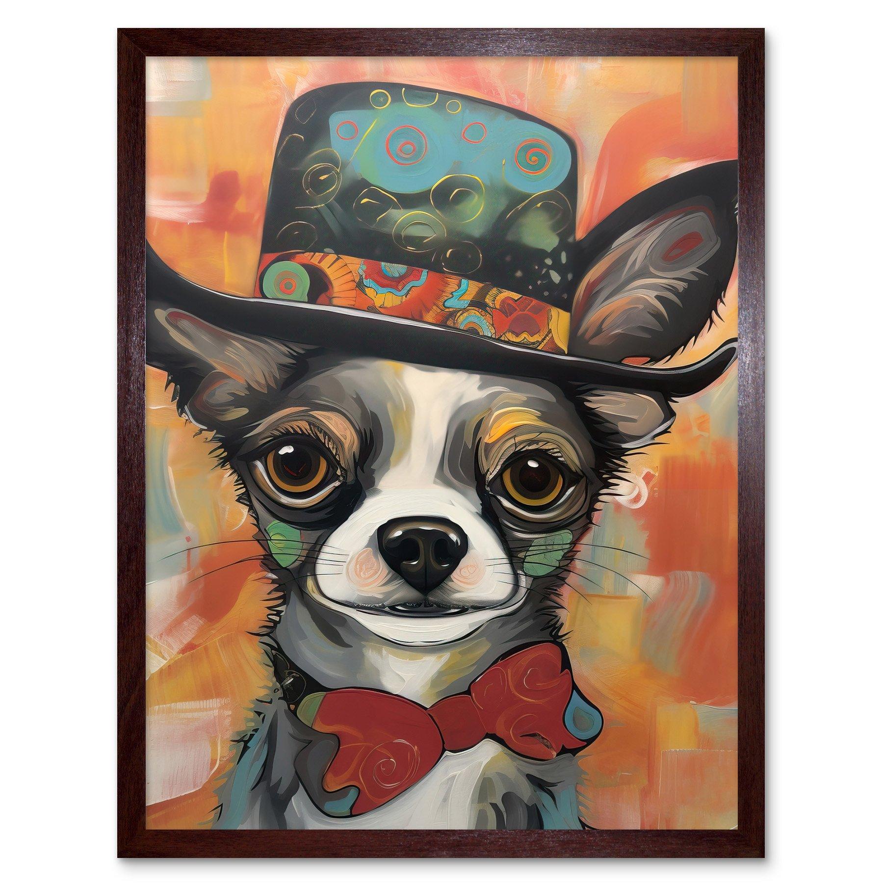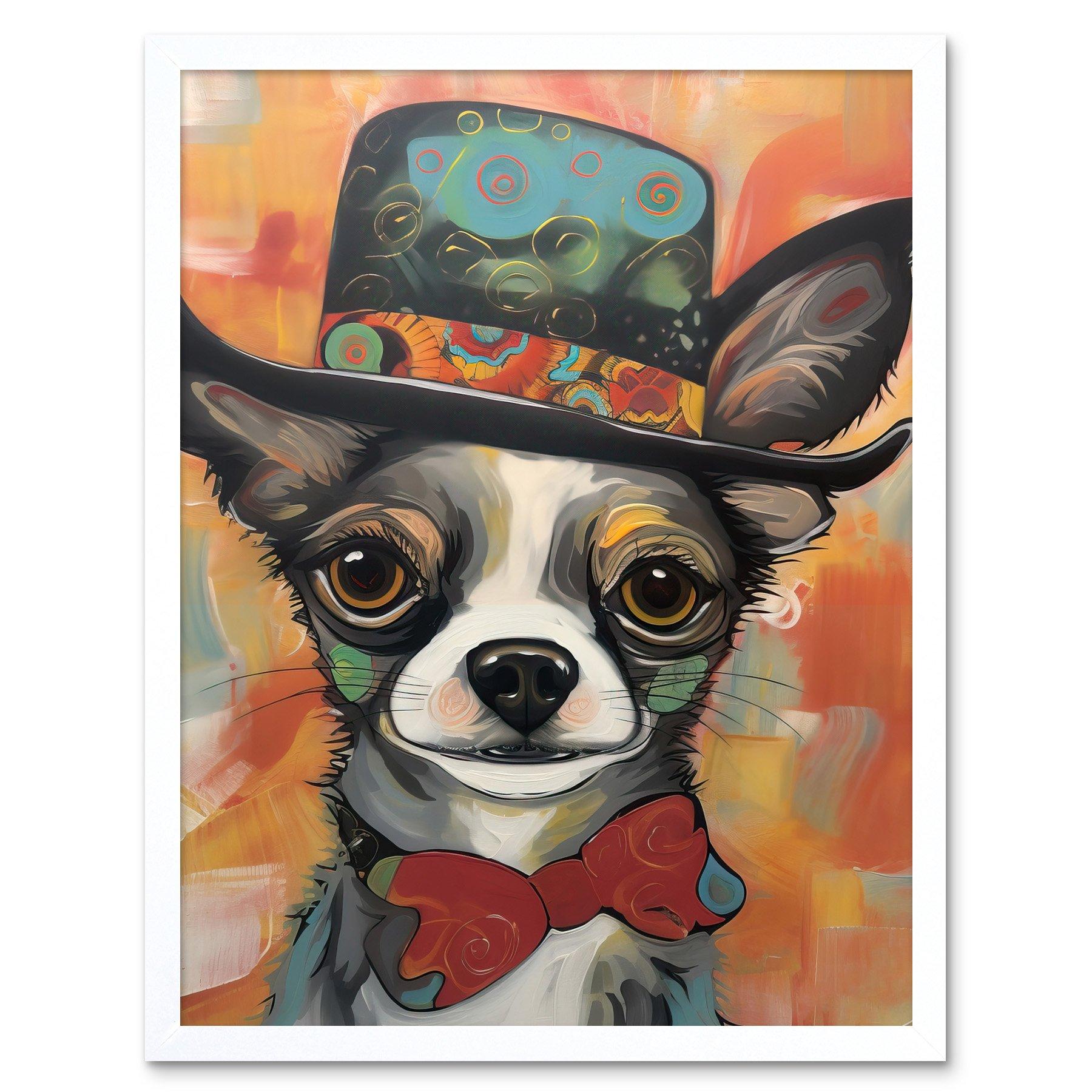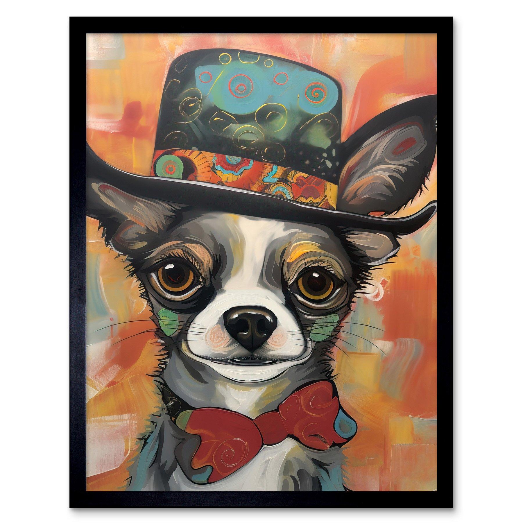Chihuahua Dog Top Hat and Bowtie Modern Folk Art Artwork Framed Wall Art Print A4
