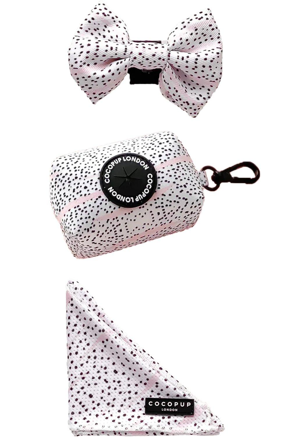 Pink Dalmatian Poop Bag Holder, Bowtie & Bandana Set