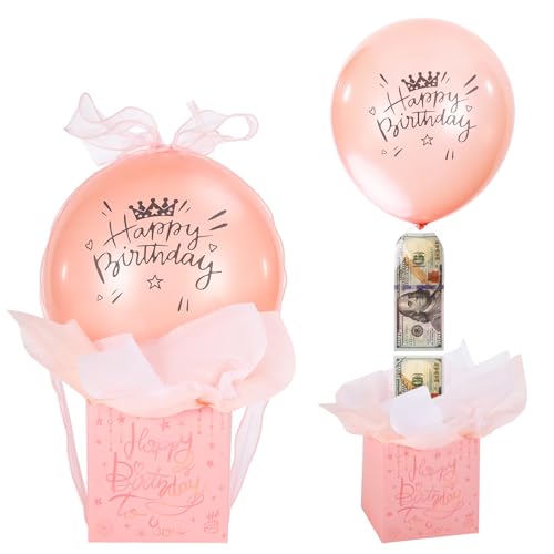 Lasuroa Pull Money Balloon Box for Cash Gift, Funny Happy Birthday Balloon Surprise Set with 36 Pieces, Rose Red, Gift Set, Birthday, Women