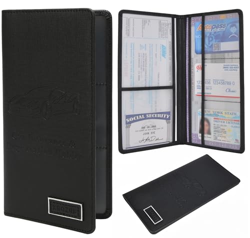 Car Registration and Insurance Holder Glove Box Folder-Premium PU Leather Car Document Wallet Driver's License, Cards and Other Essentials, black, Multi-pocket Portable Automotive Document Holder