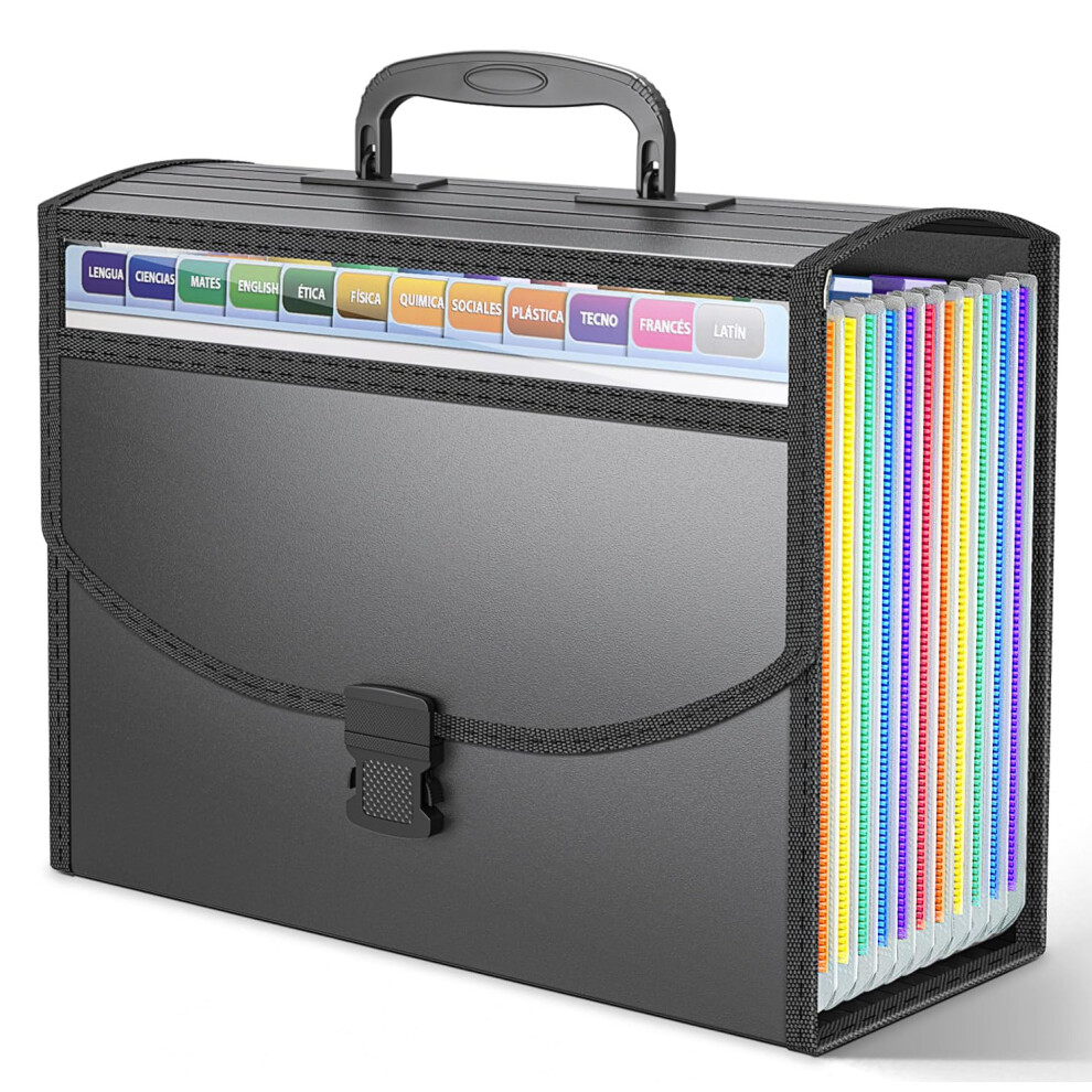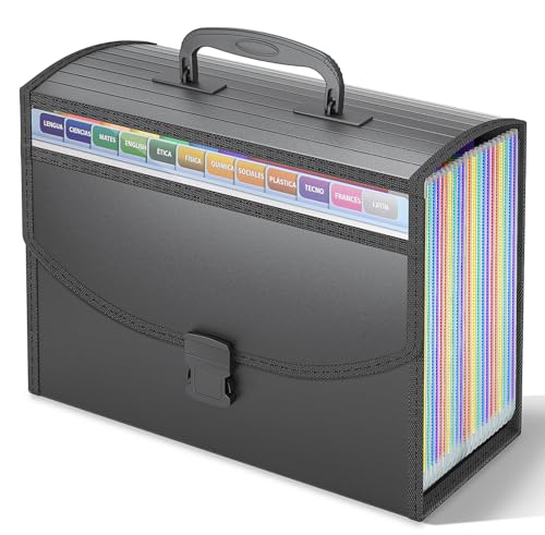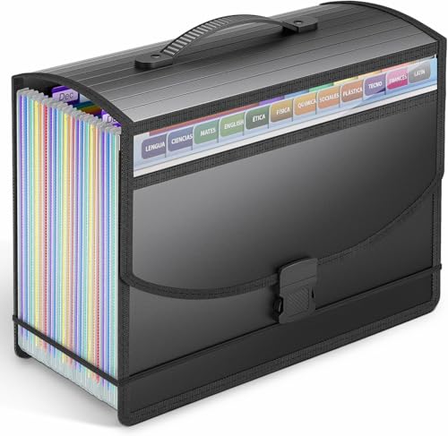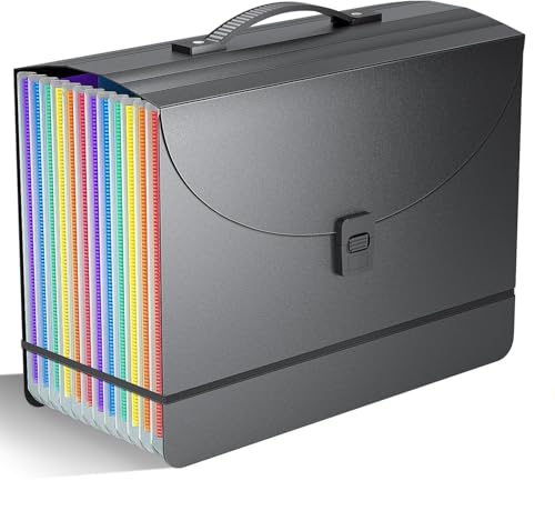 Vanulee File Organiser Filing Box File Folder Document Organiser with Handle,13 Pockets Expanding Filing Folders for A4 Paperwork,Concertina File