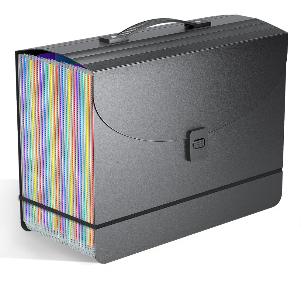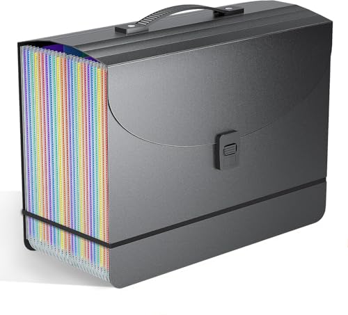 25 Pockets File Organiser Box File Folder Document Organiser with Handle,Expanding Filing Folders Concertina Files for Paperwork,Bill Receipt Paper