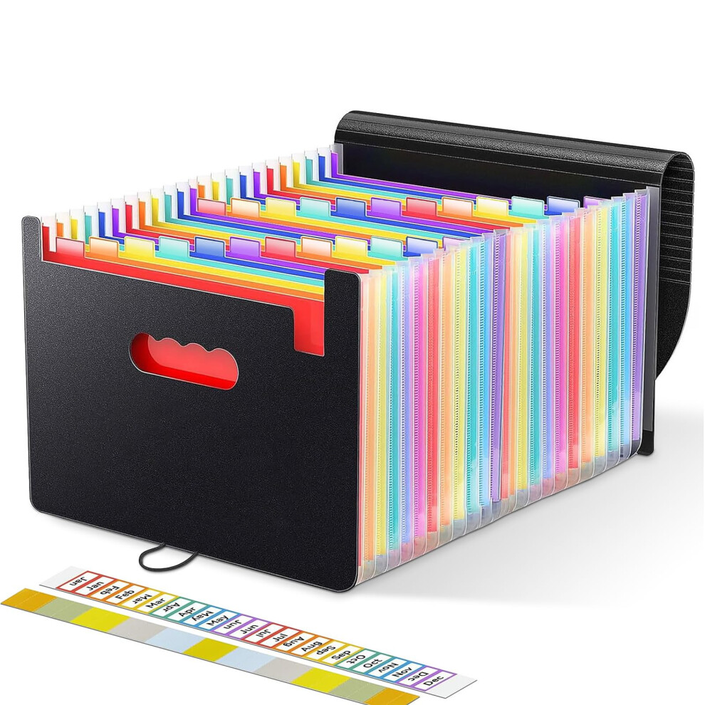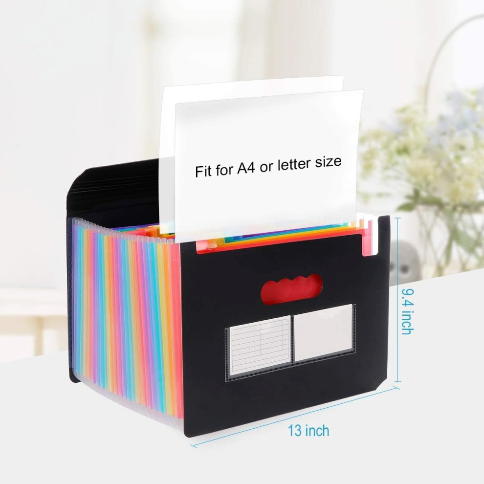 25 Pockets File Organiser Box File Folder with Handle,Vanulee Document Organiser Concertina Files Expanding A4 Paperwork Filing Folders Paper Organiser for Home School Office Travel,2pcs Tabs