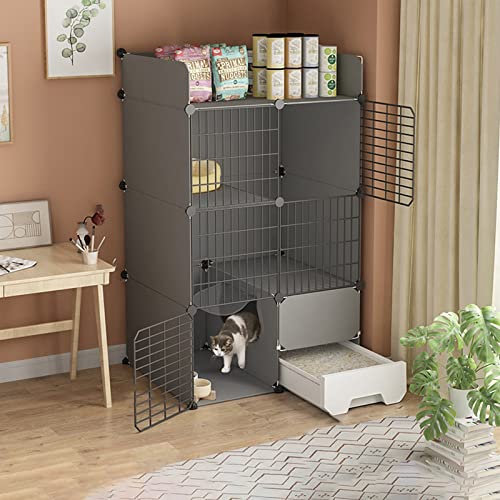 HYJYGM Cage Indoor,Collapsible Pet Cage,Cat Playpen,Pull-Out Litter Box With Cat Litter,Metal Wire Kennels Crate,For Cats,Small Animals,Black-3 L W x 1 cm H
