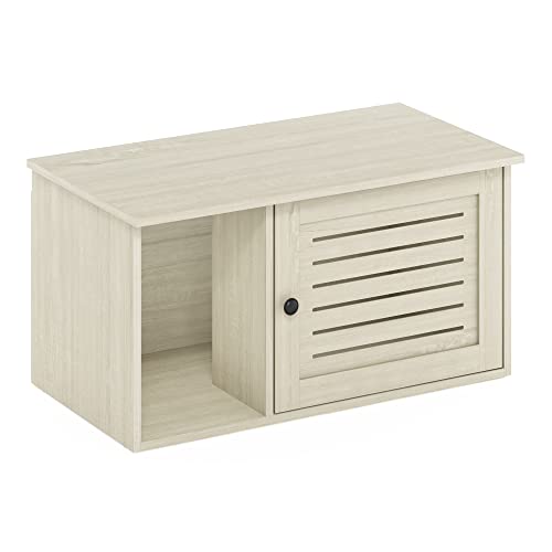 Furinno PELI Cat Litter Box Enclosure, Farmhouse Hidden Litter Box Furniture with Side Entrance, Wooden Pet House with Slatted Door, Easy Assembly, for Living Room, White Wash