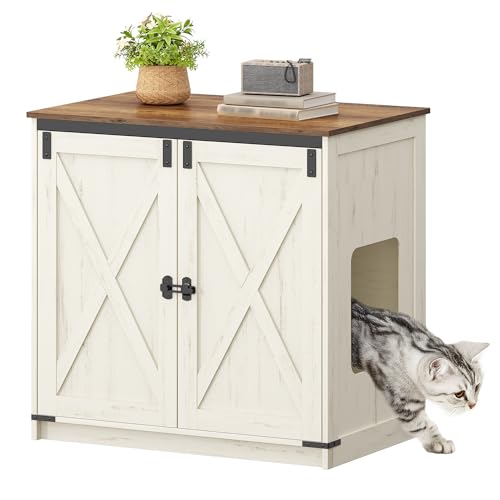 Hzuaneri Cat Litter Box Enclosure, Farmhouse Hidden Litter Box Cabinet Furniture with 2 Door, Indoor Cat House with Adjustable Dividers, 80 x 50 x 79.5cm, Rustic Brown and White CB85414X
