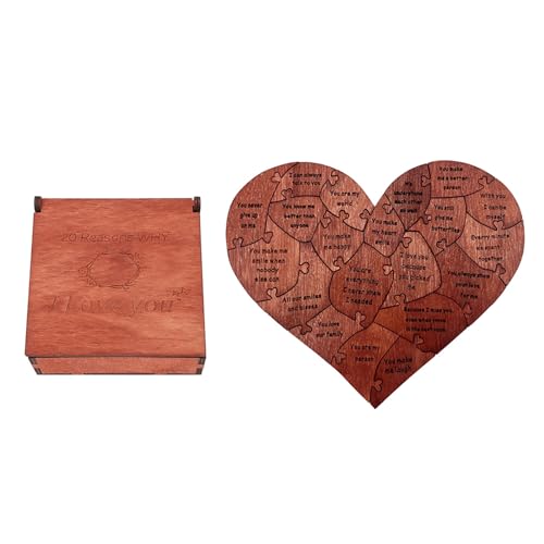 Love Heart Puzzles, 20 Reasons Why I Love You Wooden Puzzle Heart in Storage Box, Romantic Valentines Day Her, with Birch Material for DIY
