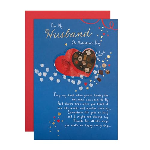 Hallmark Husband Valentines Card, Valentines Card for Husband, Heart Shaped Box of Chocolates Design, Valentine's Day, With Envelope, Blue