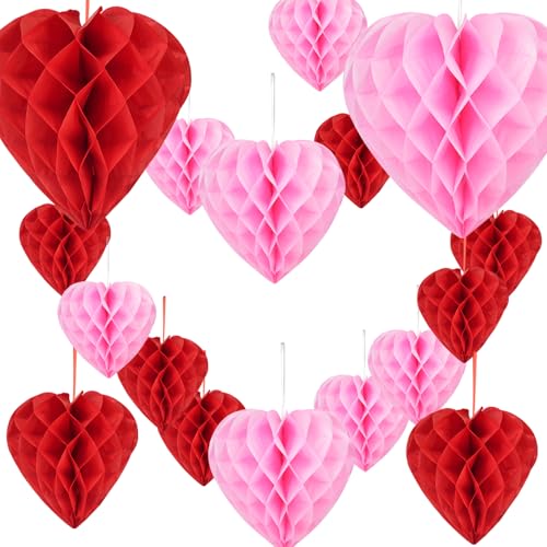 17 PCS Premium Reuse Valentines Decorations with Box Valentines Engagement Day Decorations Hanging Heart Decoration for Engagement Wedding Anniversary Birthday Party Decoration