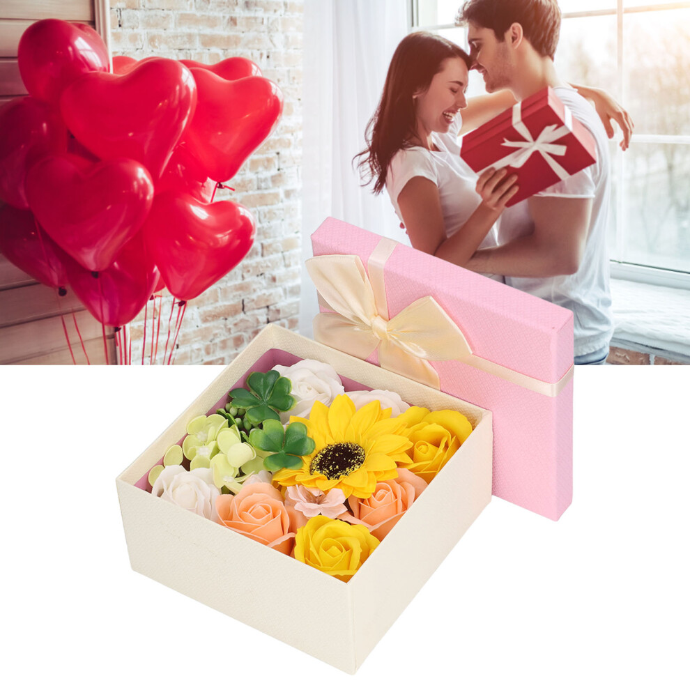 Simulation Flower Bath Soap Women Exquisite Flower Soap Gift Box for Birthday Valentines Day Christmas Yellow