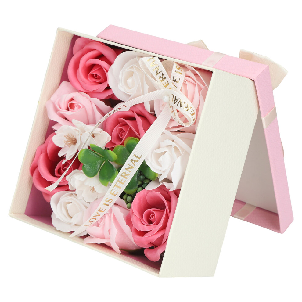 Exquisite Rose Flower Soap Gift Box 15x15x7.5cm for Valentines Day