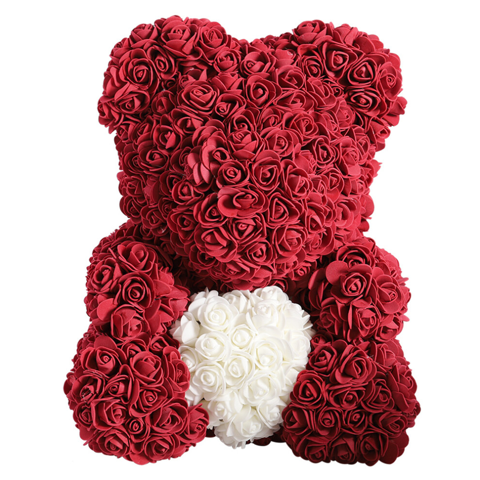 Artificial Rose Foam Teddy Bear with Gift Box for Valentines Day Birthday Wedding
