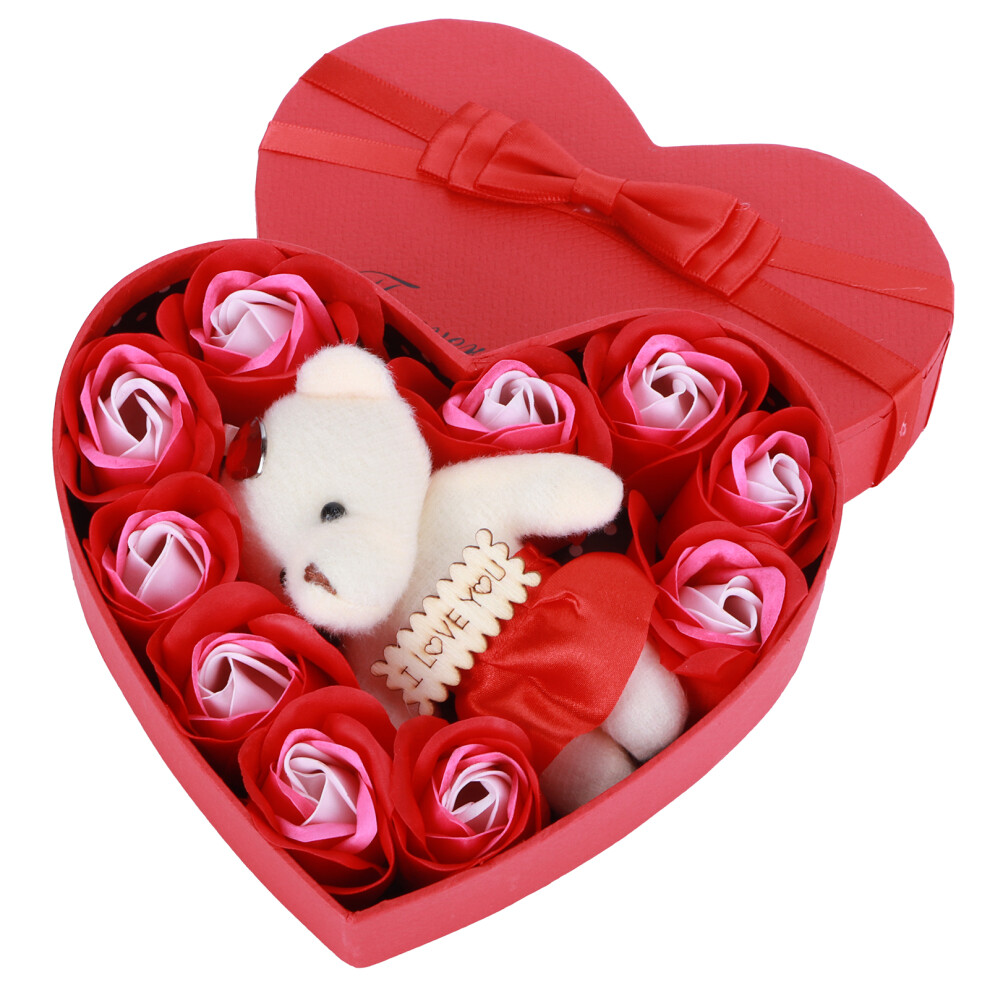 Heart Shaped Gift Box for Valentines Day, Mothers Day Present with Artificial Flowers, Sweet Teddy Love Gift, Wedding Day Fragrant Soap Roses, Anniver
