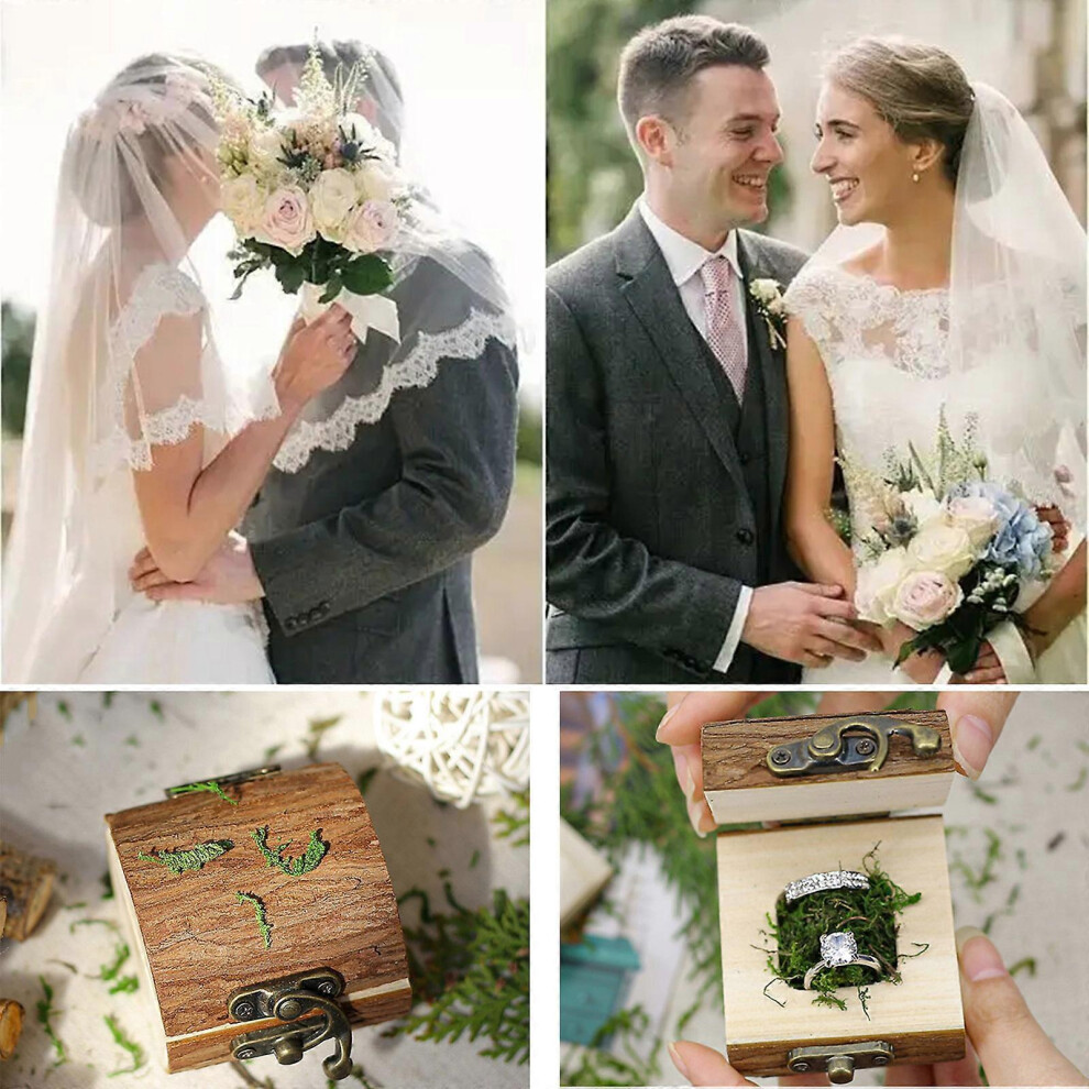 (As show, One size) Wedding Ring Holder Box Rustic Wooden Ring Bearer Box for Valentines Day