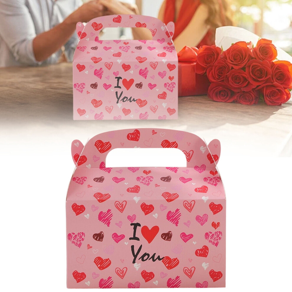 Heart Pattern Valentine Gift Box 10 Pack Portable Candy Cookie Box With Handles For Valentines Day Wedding Anniversary Party Supplies Decor