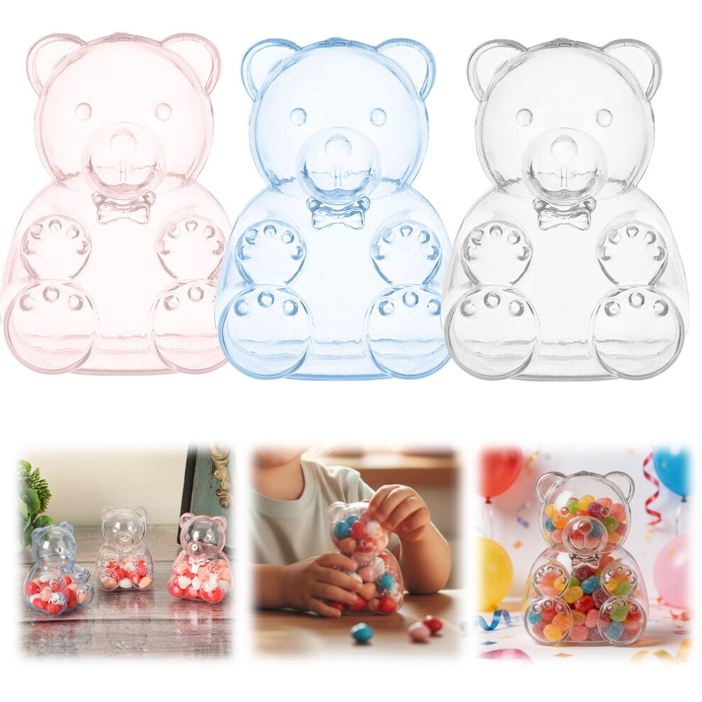 Bear Shaped Storage Jars Candy Box 12Pcs Plastic Clear Bear Snack Box for Valentines Day Gift Wedding Candy Favors Holiday Party Decorations