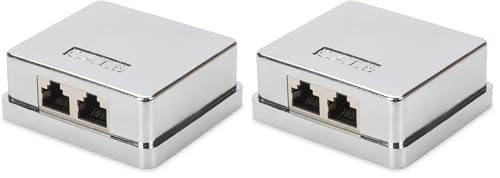 DIGITUS Junction Box Cat-6-2 Port RJ45 - Surface-Mounted Housing - Network Socket - LSA Insulation Terminal - Shielded - Silver (Pack of 2)