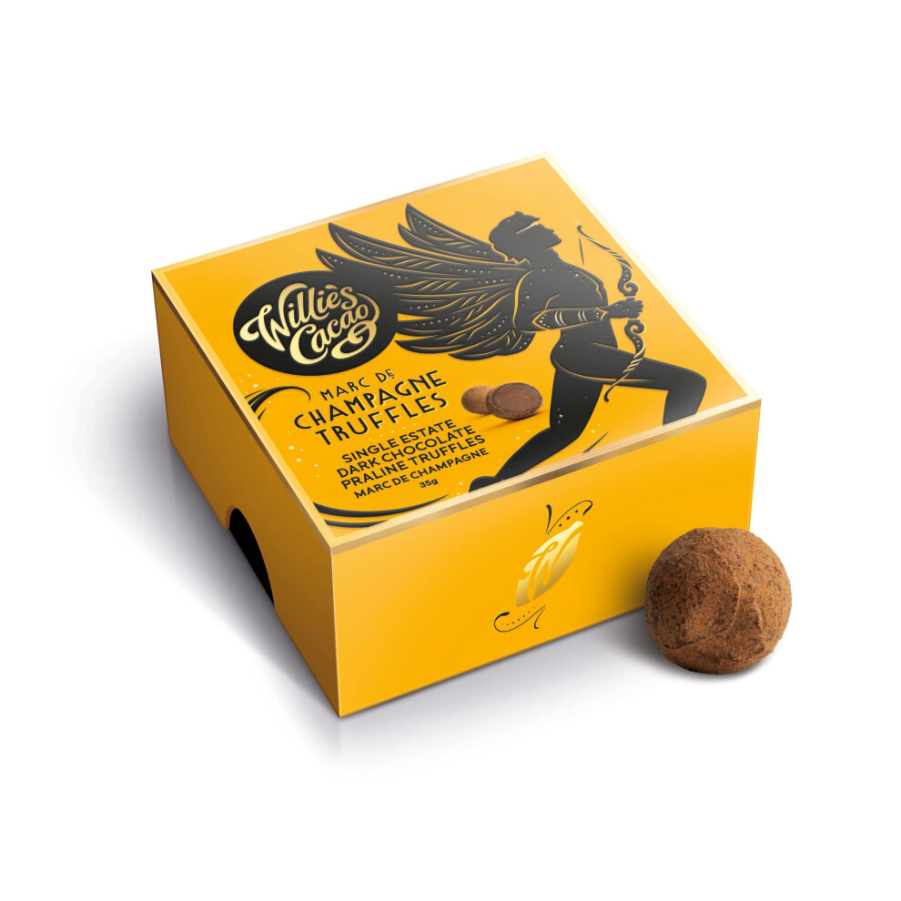 Willie's Cacao - Marc de Champagne Truffles - Small Box of Chocolates - 35g x 8 - Artisan Chocolate - 100% Natural