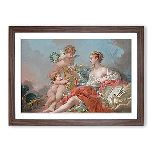 Big Box Art Allegory of Music by Francois Boucher Framed Wall Art Picture Print Ready to Hang, Walnut A2 (62 x 45 cm)