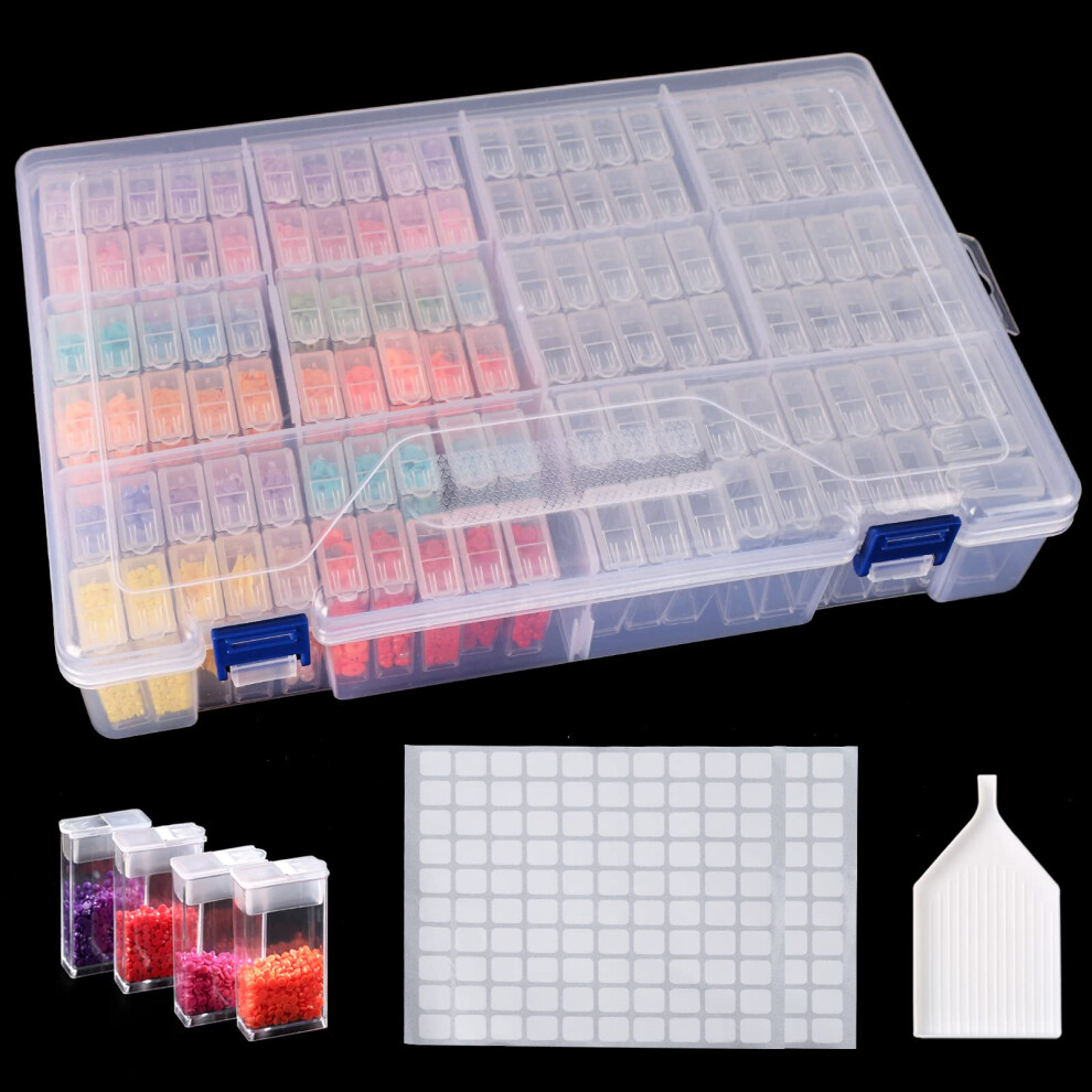 SGHUO 120 Slots Diamond Painting Storage Container 5D Diamond Accessories Embroidery Box Tools Kit for Beads Seed Art Craft with Funnel and Labels