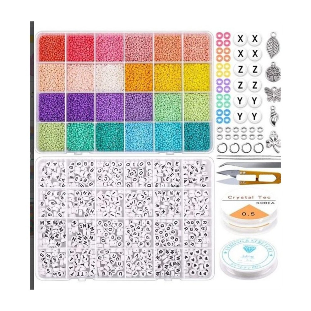 2mm Glass Seed Beads Box Set With Tools Alphabet Beads For Jewelry Making Bracelet Rings DIY Accessories Jewelry Kit