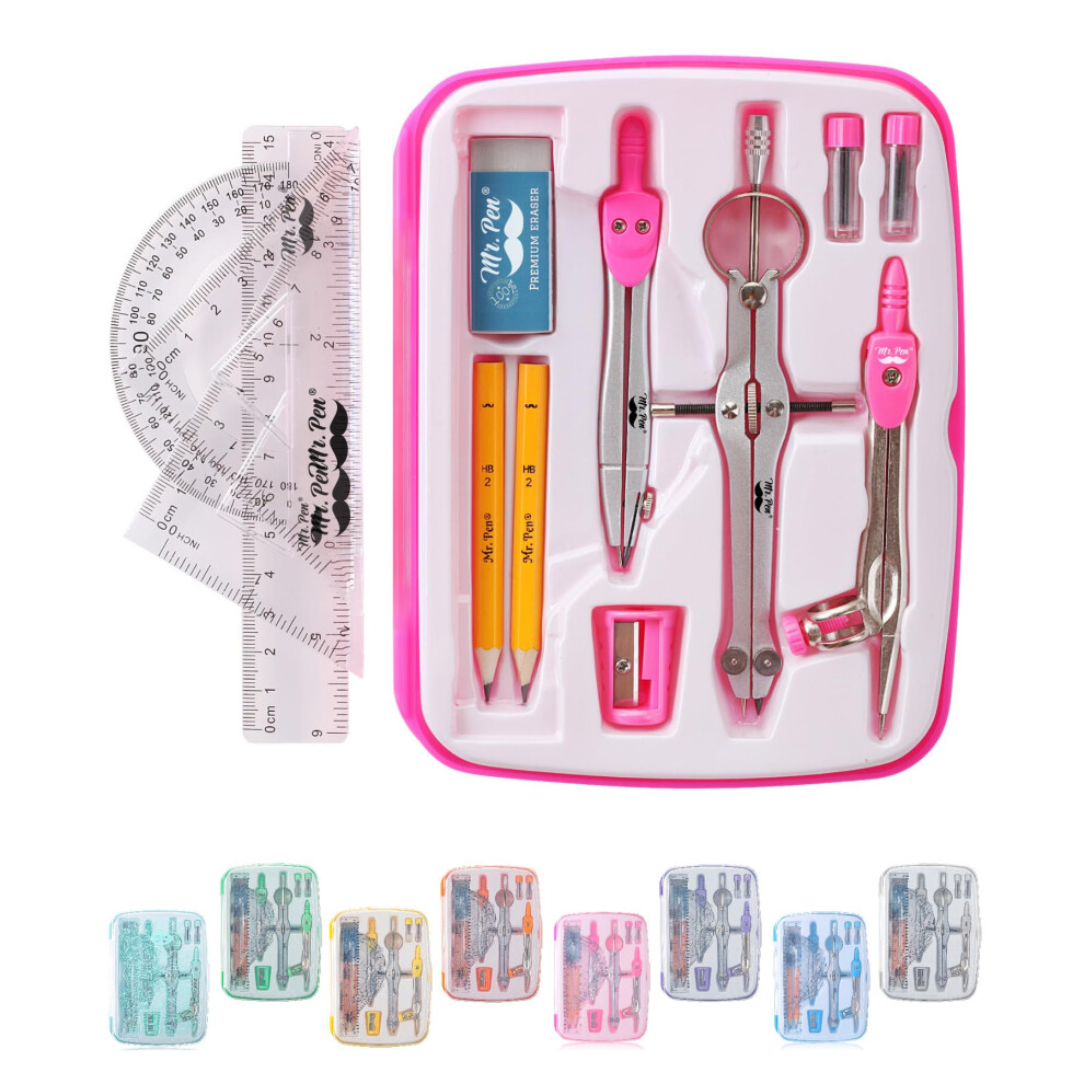Mr. Pen- Geometry Set 13 pcs Compass for Geometry Protractor Set Geometry Kit Set with Shatterproof Storage Box Geometry Kit Drawing Tools Dra