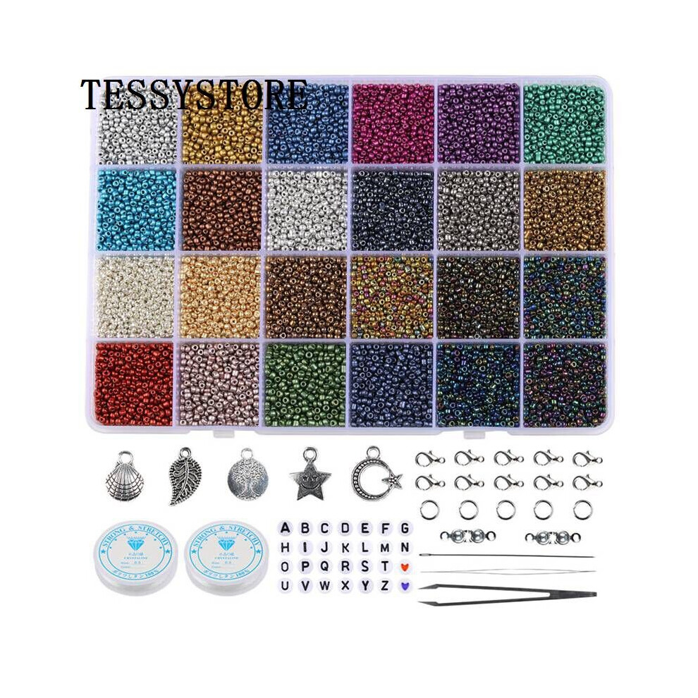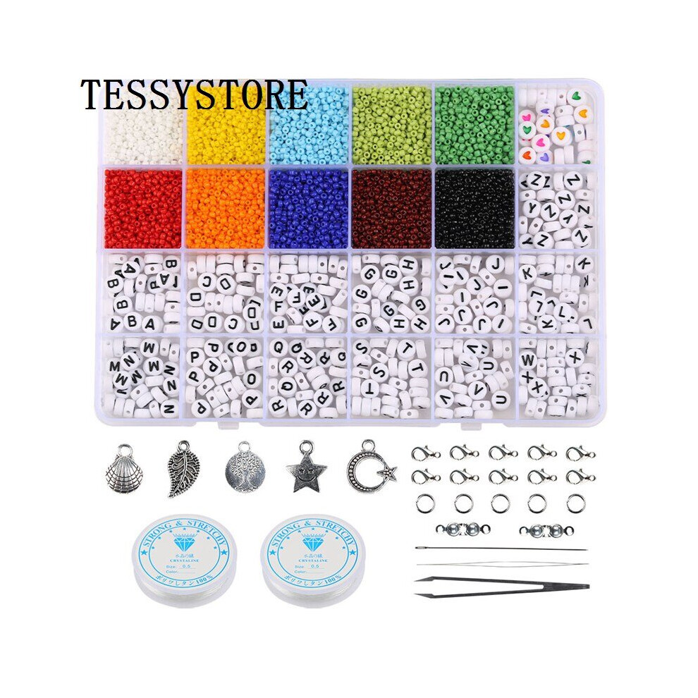 3mm Glass Seed Beads Box Set With Tools Alphabet Beads For Jewelry Making Necklace Bracelets Rings DIY Accessories Jewelry Kit
