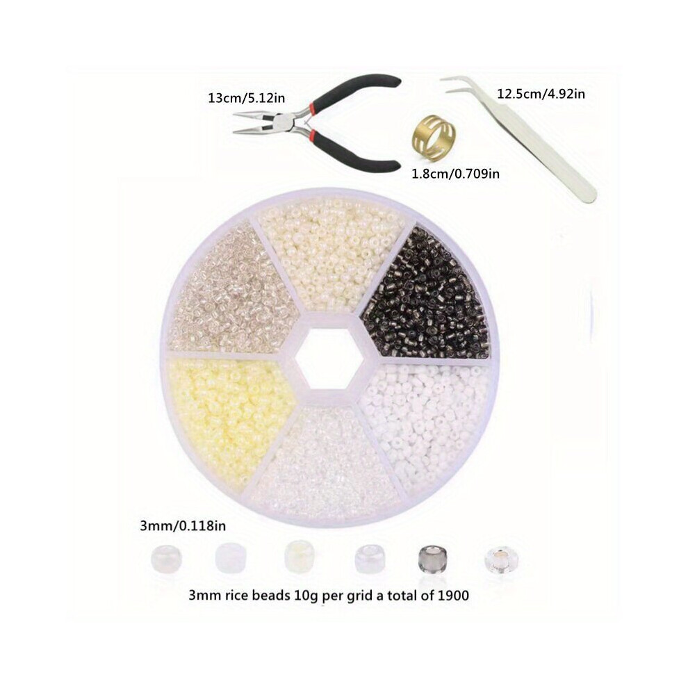 3mm 6Grids Glass Rice Beads Box Set Diy Beaded Tools Combination Accessories Materials